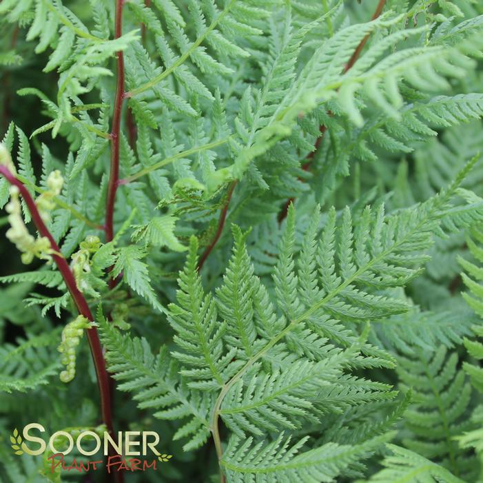 Buy Lady in Red Fern online.The lacy light green foliage of Lady in Red is held upright on dark brilliant red-violet stems. This deciduous easy-to-grow fern makes a great blending plant for Hosta and other bold-leaf plants in the woodland garden.