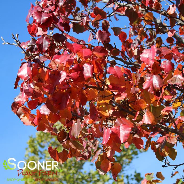 Buy Redspire Ornamental Pear online. Dense, pyramidal, deciduous tree with a narrow crown and a symmetrical canopy. Large, abundant clusters of white flowers in the spring and gold to red foliage fall color. Displays autumn color earlier than Bradford Pear. Highly acclaimed tolerance to city conditions and heavy clay soils.